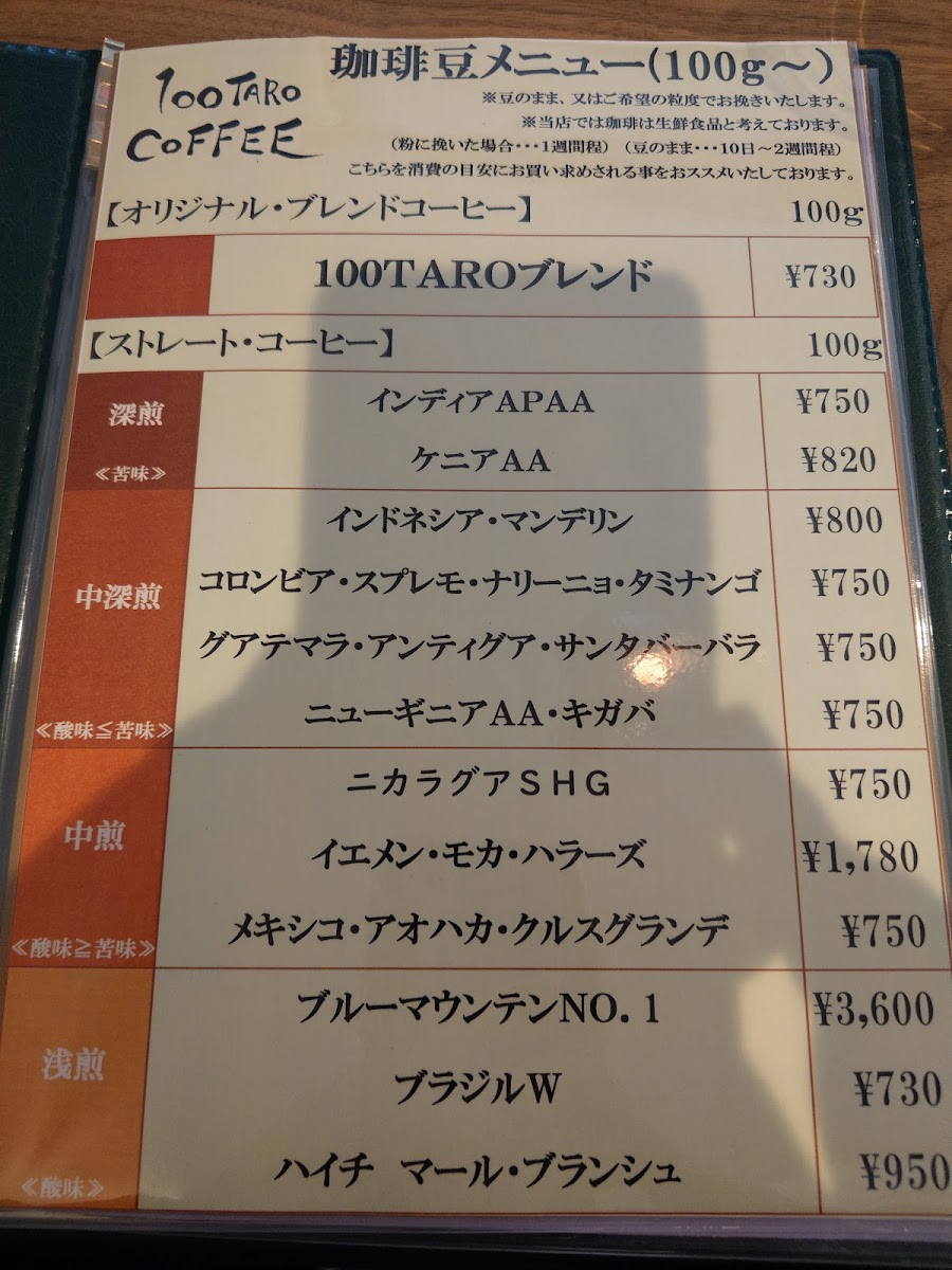 100TARO COFFEE ROASTER Menu